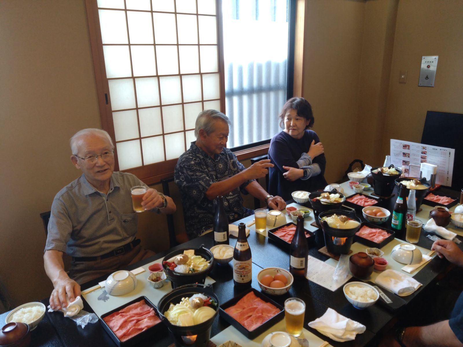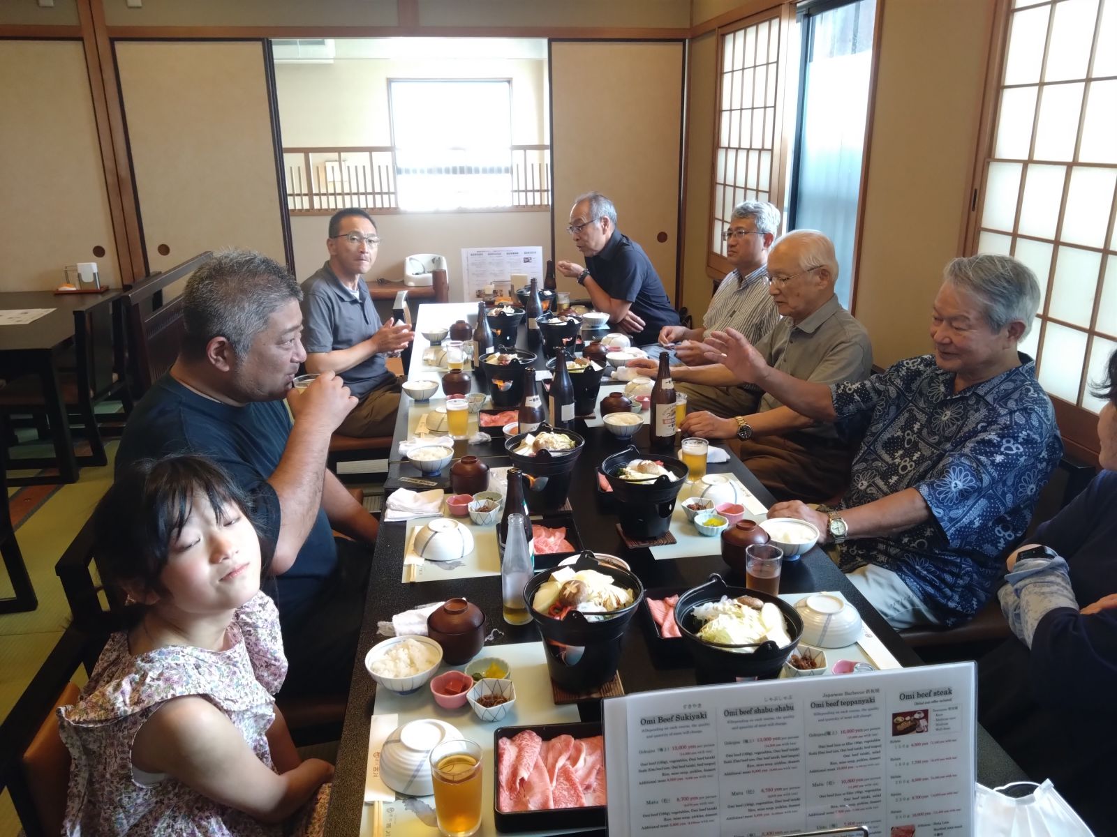 ツアー終了後昼食は、昭和25年創業の近江牛専門店「まるたけ近江西川」ですき焼きを参加者9名で堪能いたしました。半日のツアーでしたが、普段は入れない建物への入館等貴重な体験ができたものです。