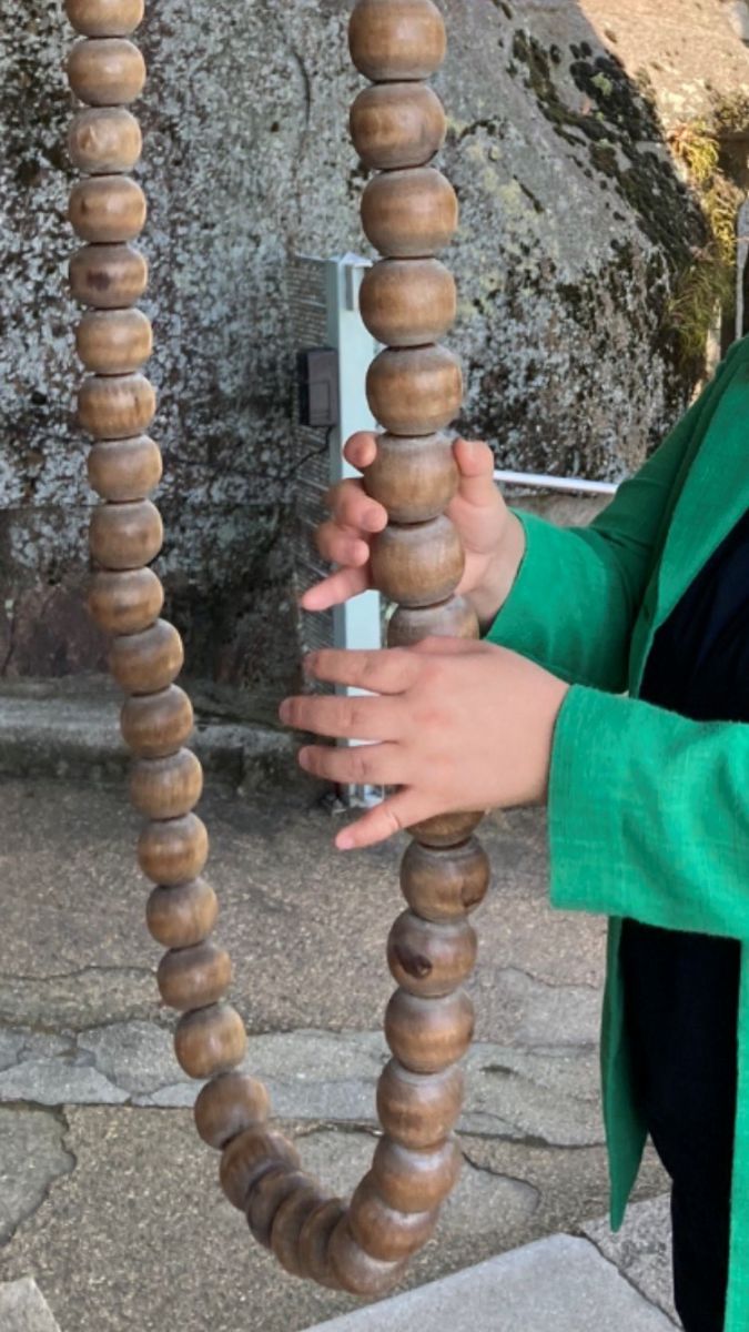 千光寺には「カチカチ数珠」という大きな数珠があります。数珠を回すと、数珠玉が上から落ちて「カチカチ」と音が鳴ります。千光寺を訪れた際には、ぜひ回してみていただきたいです。