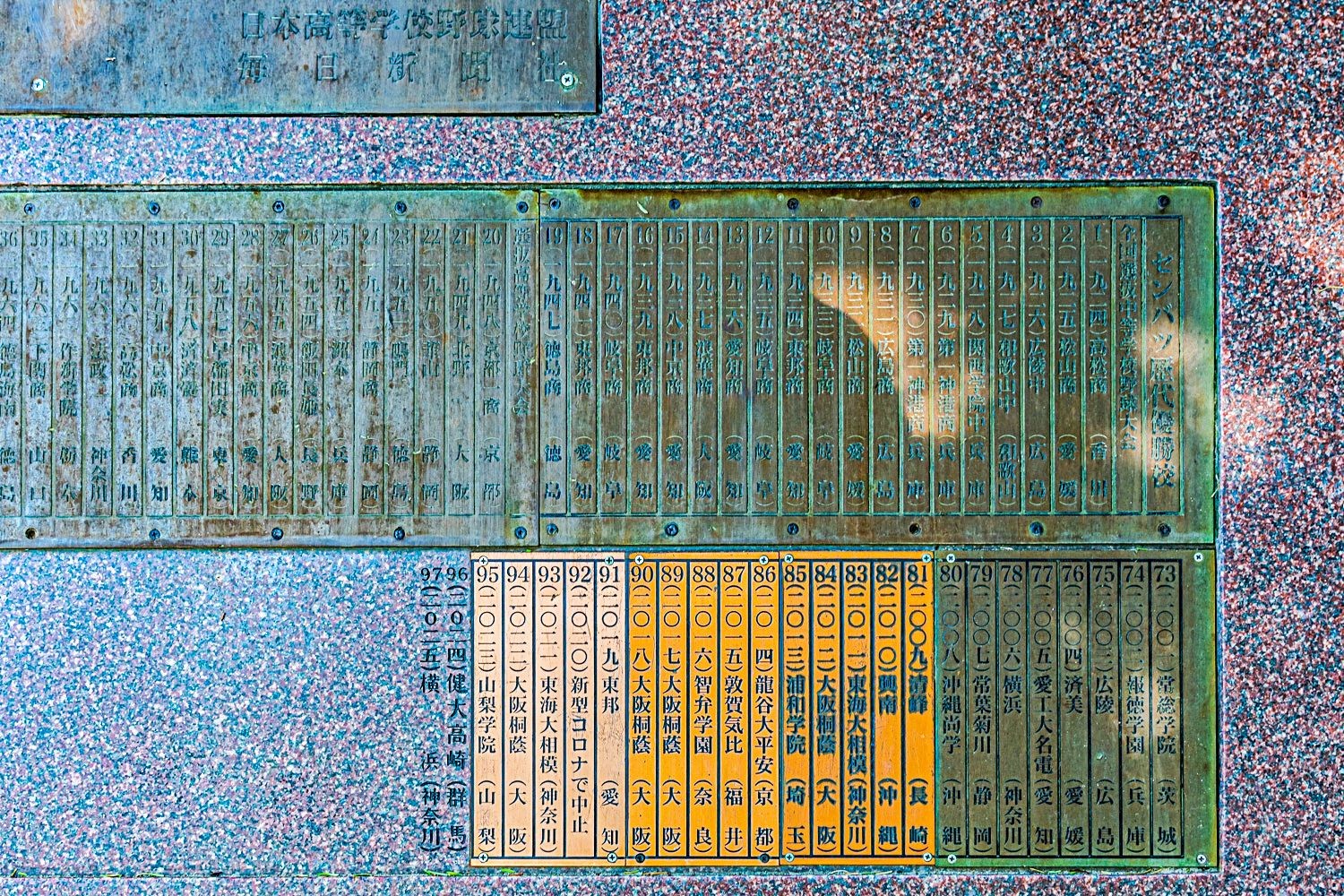 現在は「選抜高校野球発祥の地」であることを後世に伝えるために、かつてホームプレートがあったところにモニュメントが建てられ、歴代の優勝校名を刻んだプレートがはめ込まれています。
